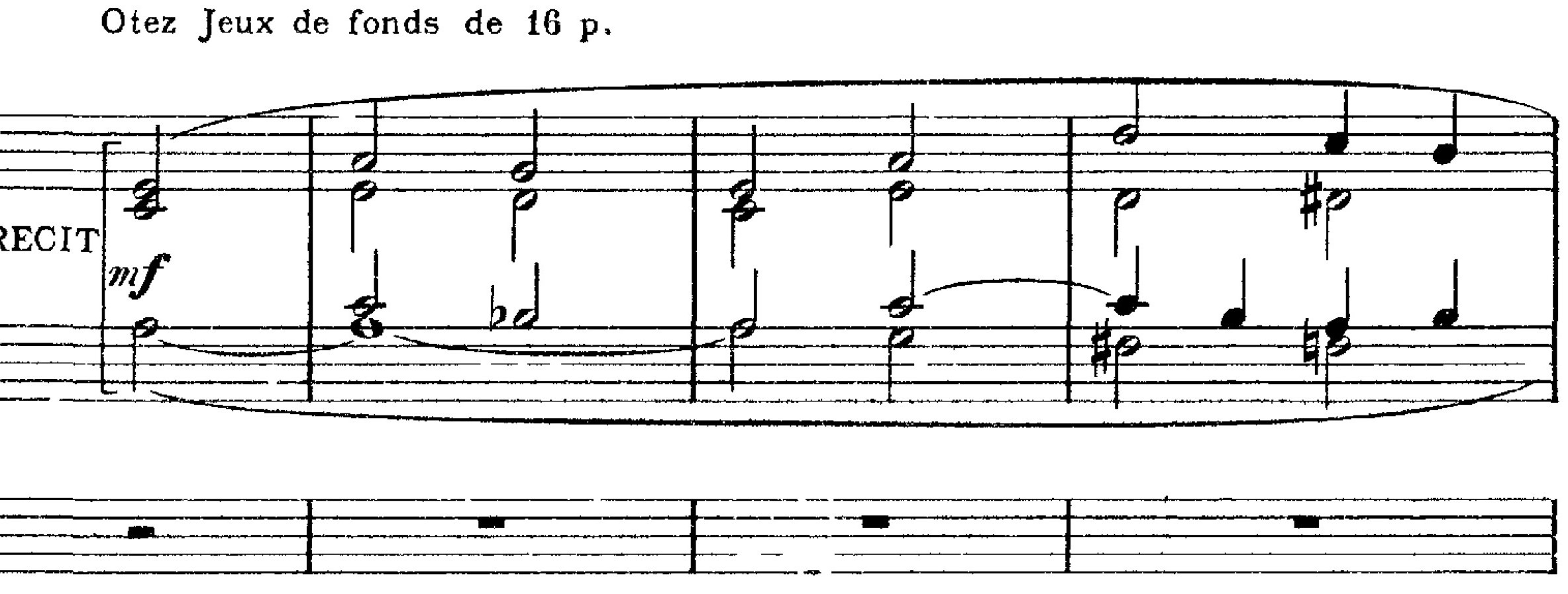 That does not preclude the organ from being just as — or more — expressive than other instruments, it just requires more extra-musical activity.  Okay, let’s get specific:  for example take the very beginning of the “chorale” (mm. 29-31):
