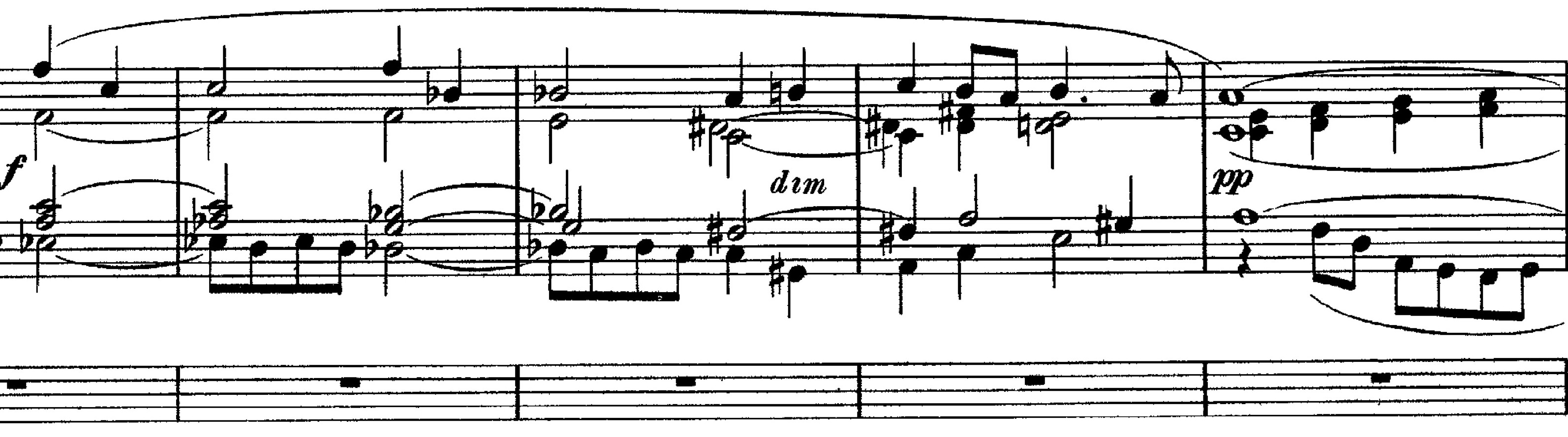 The opening theme (of which the first and last measures are the most important) is very agitated and leaves the listener very unsettled: